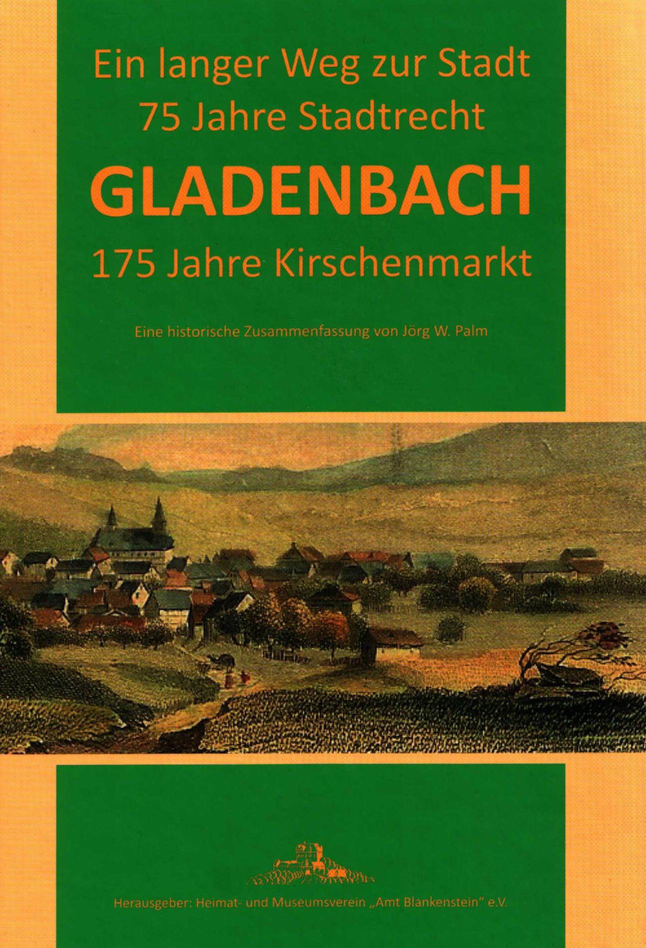 | Inhalt: | 75 Jahre Stadtrecht – Wie alles begann – Entwicklung bis zum Landgerichtsbezirk – Weitere Entwicklung bis 1938 – Das Jubiläumsjahr 1937 – Der Neuanfang und die Jahre bis 2012 175 Jahre Kirschenmarkt – Marktrecht in Gladenbach – Kirschenmarkt |