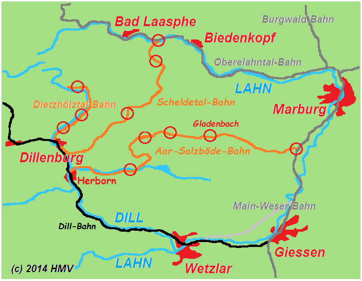Scheldtetal-Bahn und Aar-Salzböde-Bahn waren mit der Dill-Bahn verbunden.